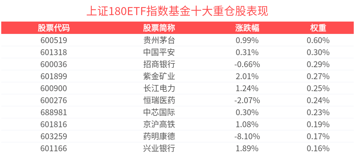 自帶槓鈴型配置、國企佔比最高的寬基ETF——上證180ETF指數基金:90%紅利+10%科創。該基金緊密跟蹤上證180指數,上證180指數從滬市證券中選取市值規模較大、流動性較好的180只證券作為樣本,反映上海證券市場核心上市公司證券整體表現。