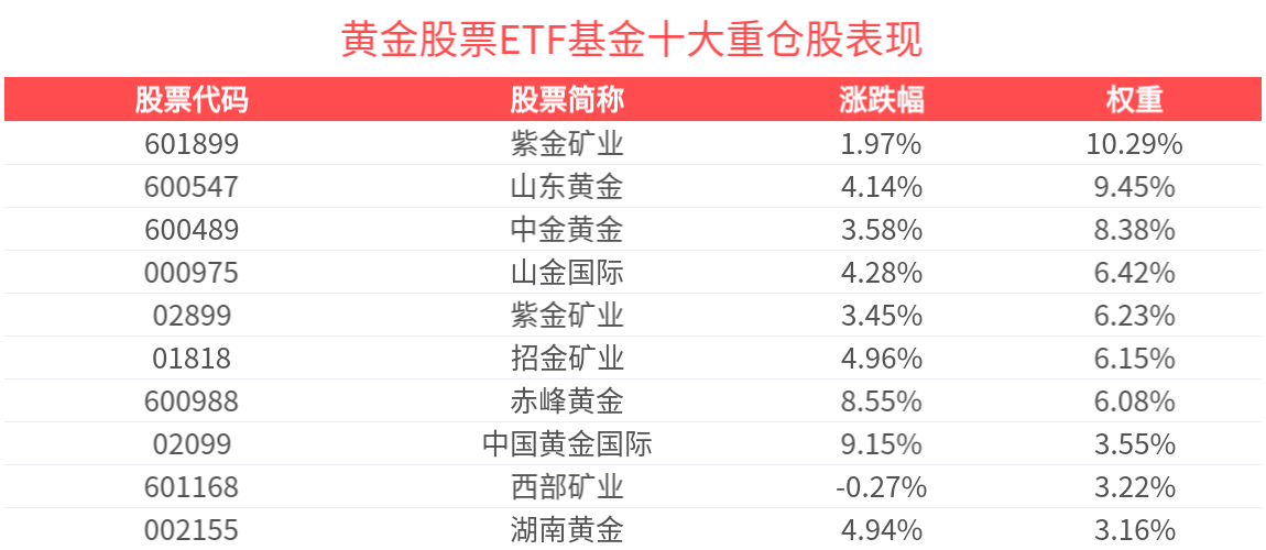 黃金股票ETF基金緊密跟蹤中證滬深港黃金産業股票指數,中證滬深港黃金産業股票指數從内地與香港市場中,選取50只市值較大且業務涉及黃金採掘、冶煉、銷售的上市公司證券作為指數樣本,以反映内地與香港市場中黃金産業上市公司證券的整體表現。