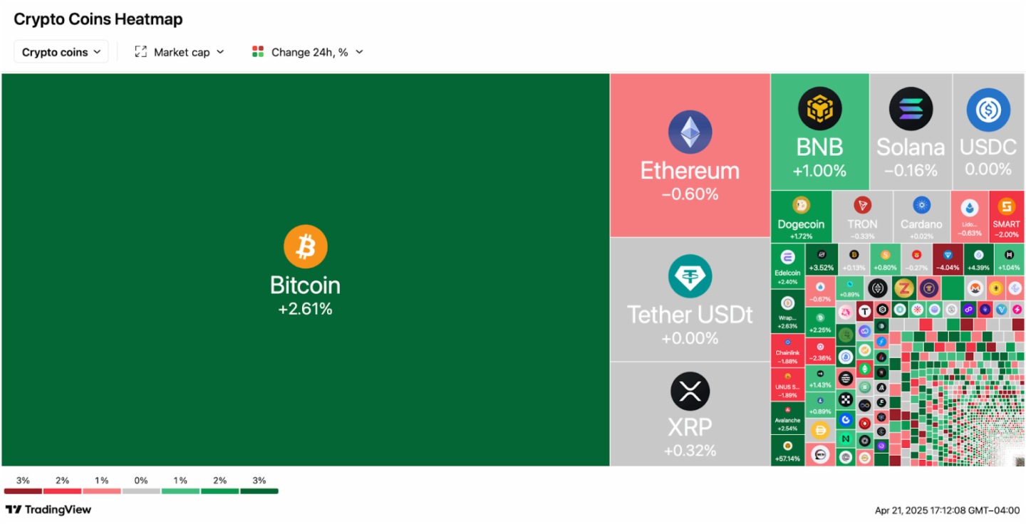 然而,與傳統市場的慘烈形成鮮明對比,加密貨幣市場逆勢增長 1.77%,總市值突破 2.73 萬億美元,比特幣(BTC)一度觸及 88,527 美元高位,最終收於 87,262 美元,日内漲幅 2.61%。更值得關注的是,部分另類代幣如 Convex Finance(CVX)單日暴漲 21.04%,Stacks(STX)上漲 12.98%,甚至「FARTCOIN」這類迷因幣也錄得 8.52% 漲幅。