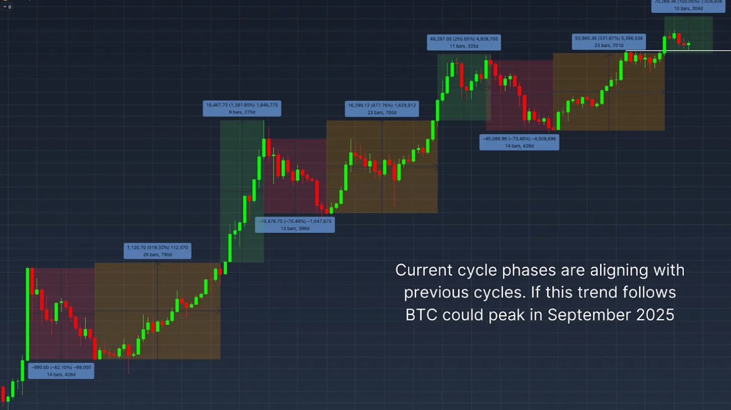 本轮周期比以往周期更为缓慢且波动更大,但并未打破历史结构模式。比特币似乎已蓄势待发,准备再次上行,如果传统市场不发生进一步恶化,可能会在第三季度或第四季度初达到新峰值。