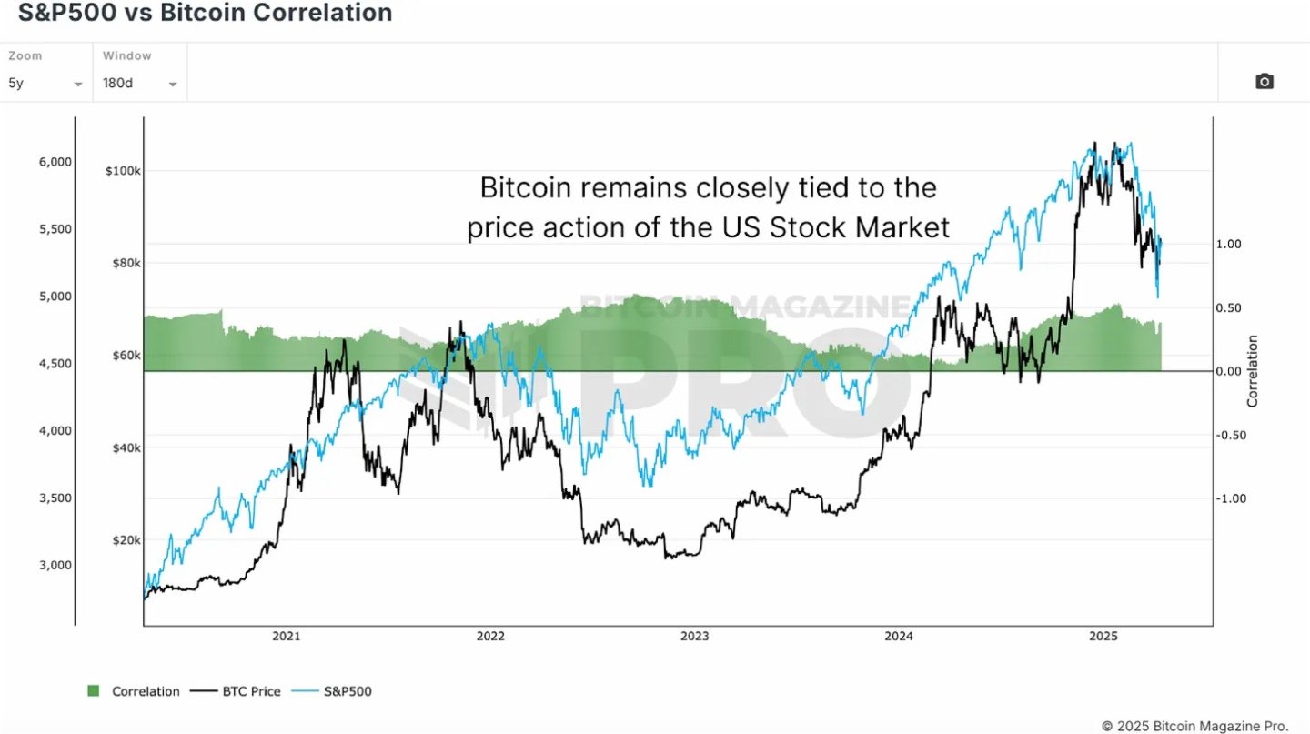 尽管链上数据令人鼓舞,但宏观不利因素仍然存在。对标普 500 指数与比特币相关性图表的分析表明,比特币仍与美国股票市场保持高度关联。随着对潜在全球衰退的担忧加剧,传统市场的持续疲软可能会影响比特币在短期内反弹的能力。