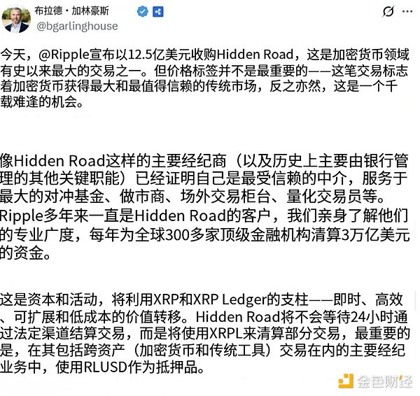 Johansen 指出:「如果說 Metaco 是存儲資産的保險庫,那麼 Hidden Road 就是讓 Ripple 能夠利用其龐大資産負債表,為其業務『加速』,而在主經紀業務中,『資本獲取能力』極其關鍵。」