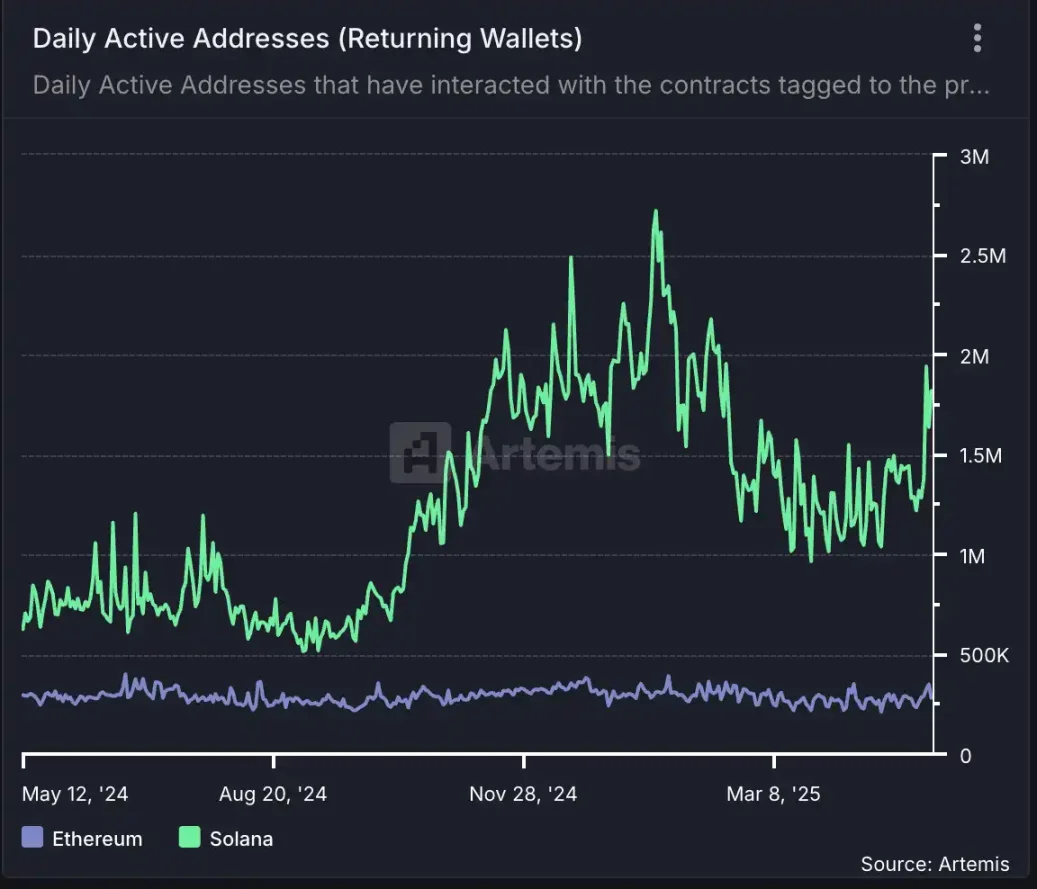 隨著多個利空被市場消耗殆盡,市場從底部稍有起色,而過去 7 天最亮眼的鏈就是以太坊。這個在前段時間被人诟病無數的鏈,隨著 Pectra 升級、ETF 的持續買入、Virtual 的打新模式的成功,資本認可 + 技術升級 + 鏈上生態繁榮,讓以太坊的幣價持續上漲,與此同時也讓以太坊鏈上 Memecoins 重復復蘇。