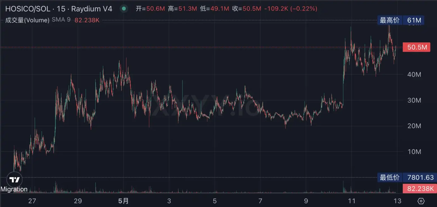 HOSICO 是筆者在 BONKFUN 上綫時提到過的 Memecoin,同屬 BONKGUY 推廣的「初代」BONKFUN 代幣 HOSICO 也持續著健康的 K 綫走勢,這個自 BONKFUN 上綫以來就領先其他同期代幣的網紅貓,同時也被社區視為最有希望成為 BONK 首個突破 1 億市值的 Memecoin。