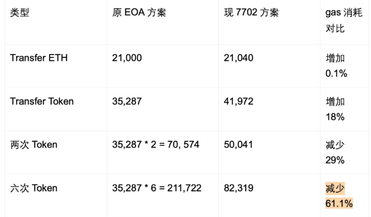 對於交易所、DApp 而言,應用上 EIP-7702 的特性將帶來 50% 以上的成本縮減,進而全面擁抱合約賬戶時代。