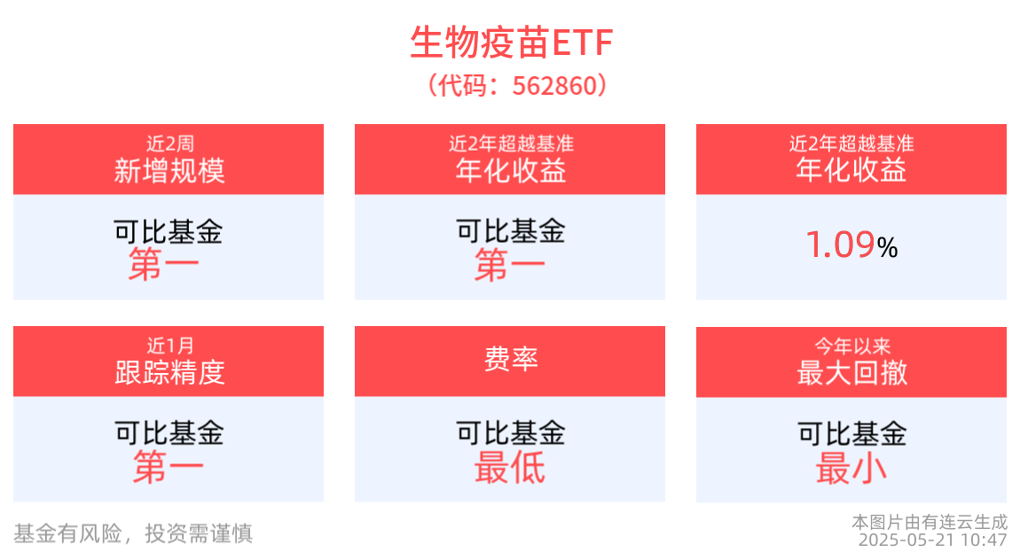流動性方面,生物疫苗ETF盤中換手1.26%,成交326.45萬元。拉長時間看,截至5月20日,生物疫苗ETF近1周日均成交1223.03萬元。