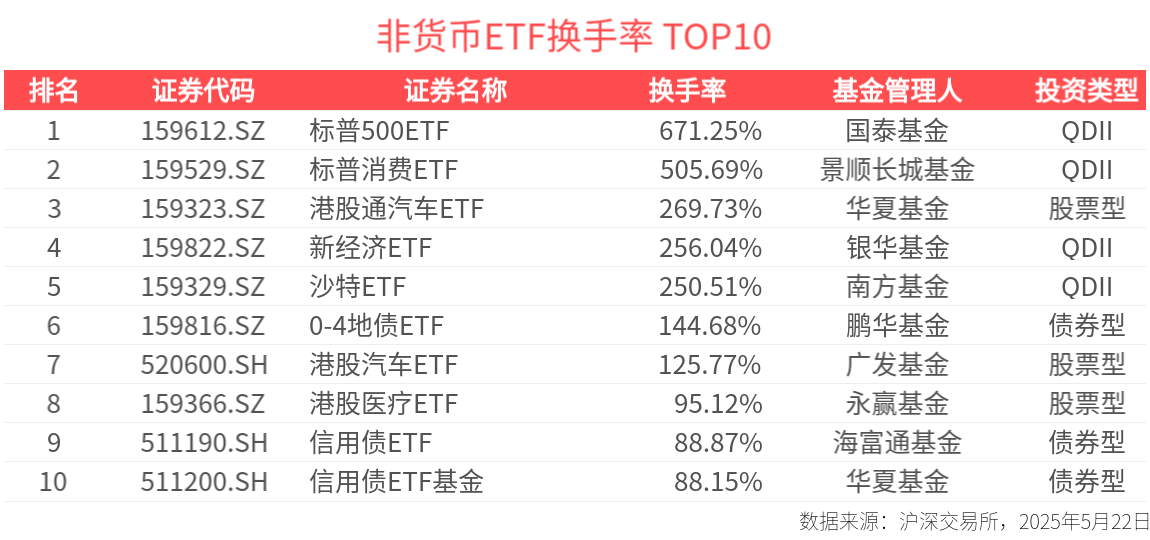 2025年5月22日,非貨幣類ETF合計成交1816.81億元,其中有41只ETF成交額破10億元。
