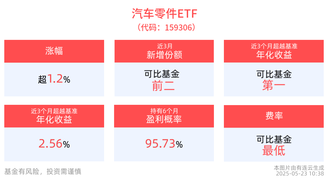 份額方面,汽車零件ETF近3月份額增長600.00萬份,實現顯著增長,新增份額位居可比基金2/4。