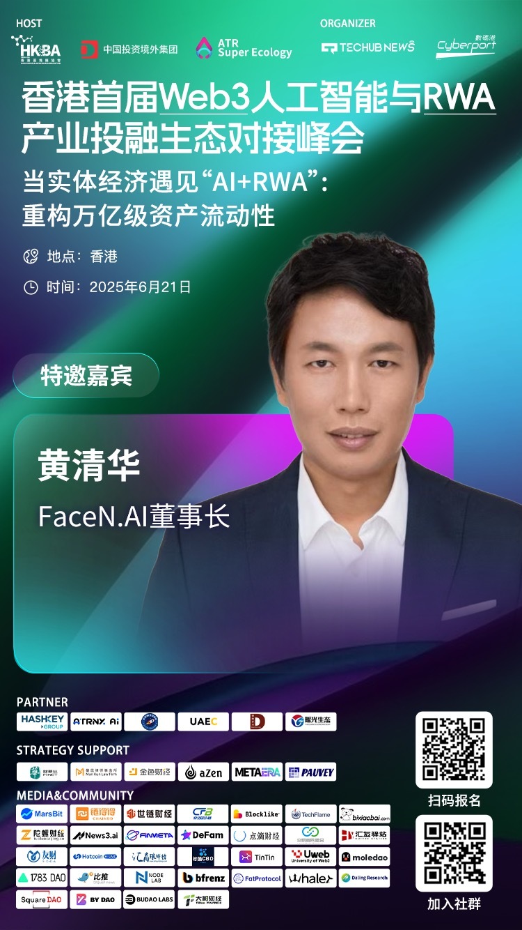 Techub News 消息,FaceN.AI 董事長黃清華確認將出席 2025 年 6 月 21 日在香港舉辦的「香港 Web3 人工智能與 RWA 産業投融資生態對接峰會」。FaceN.AI 作為人工智能與區塊鏈融合的創新項目,致力於打造一個兼具匿名性與創造力的社交媒體平台,使用戶能在保護隱私的同時自由表達想法。黃清華的出席預計將為峰會帶來關於 AI 驅動的 Web3 創新的深刻洞見。