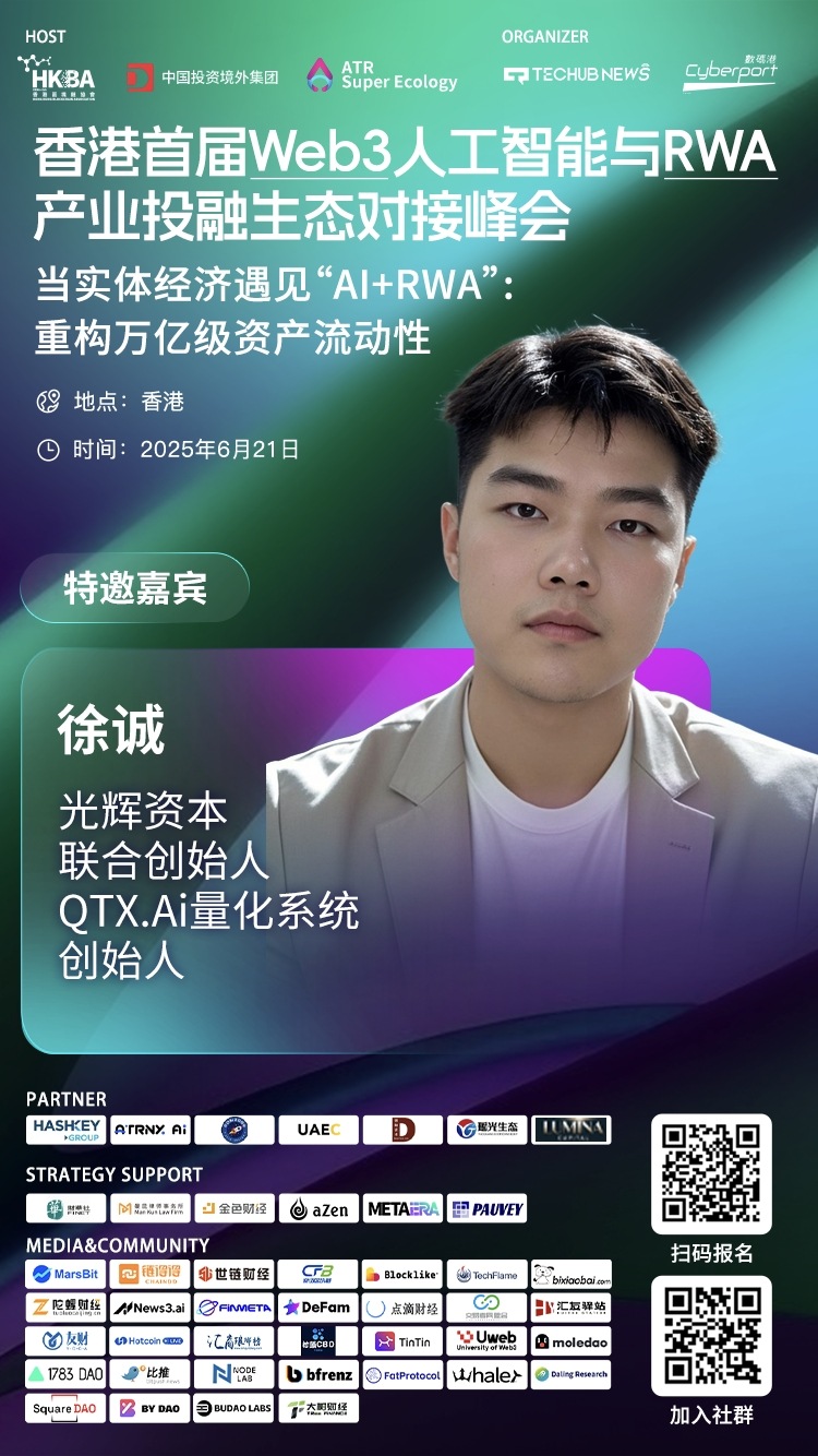 Techub News 消息,光輝資本聯合創始人兼 OTX.Ai 量化係統創始人徐誠確認出席 2025 年 6 月 21 日在香港舉辦的「香港 Web3 人工智能與 RWA 峰會」。徐誠先生作為光輝資本的聯合創始人,在量化投資、人工智能及區塊鏈技術領域擁有豐富經驗。他創立的 OTX.Ai 量化係統,依託先進的算法與數據分析技術,為金融市場提供創新的智能化解決方案,其前沿洞見將為峰會注入獨特的行業視角,助力推動 AI 與現實世界資産(RWA)的融合創新。