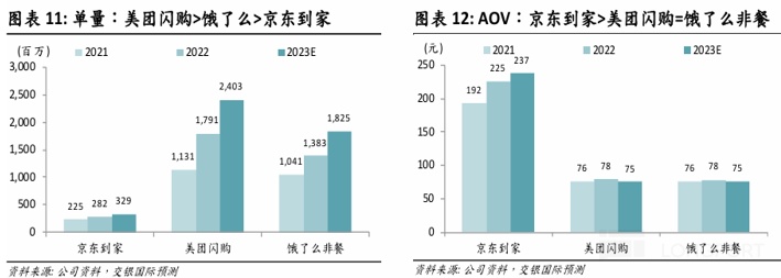 可見,不同業務模式的下單頻次上,餐飲外賣>京東電商(這是京東 「品質自營」 電商獨有的問題,淘寶等平台型電商用戶下單頻次並不低於外賣)> 即時零售。因此,下單頻次上遙遙領先的餐飲外賣,邏輯上能起為更低頻的即時零售(甚至京東主站電商)導流的作用。
