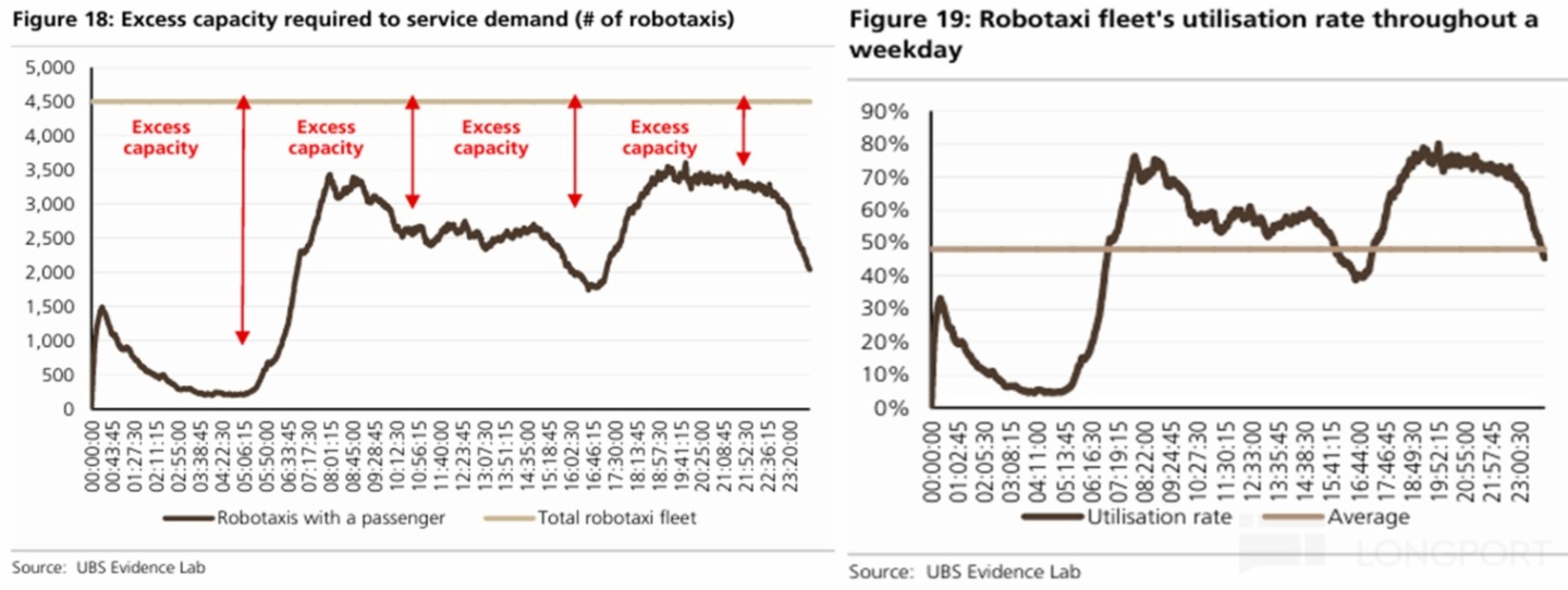 但由於現實中的網約車需求存在波峰與波谷,早晚高峰時對網約車的需求為 3500 輛左右。且為了保證乘客體驗(控制等車時間)和應當突發需求,實際該城的網約車隊供給需要在波峰之上仍留有一些餘量,本案例中即 4500 輛左右。那麼就意味著該城的網約車隊的平均使用率僅有 50%,有近一半時間是閑置的。