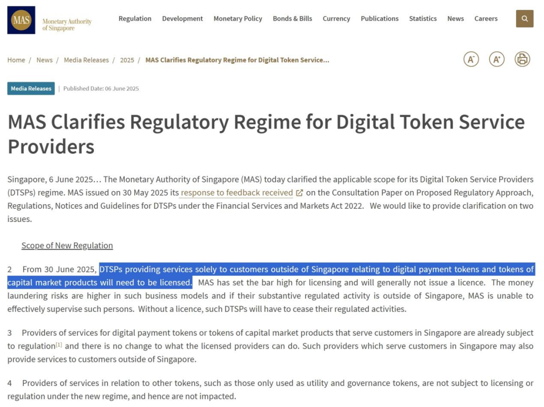 2025 年 6 月 6 日,MAS 進一步澄清: