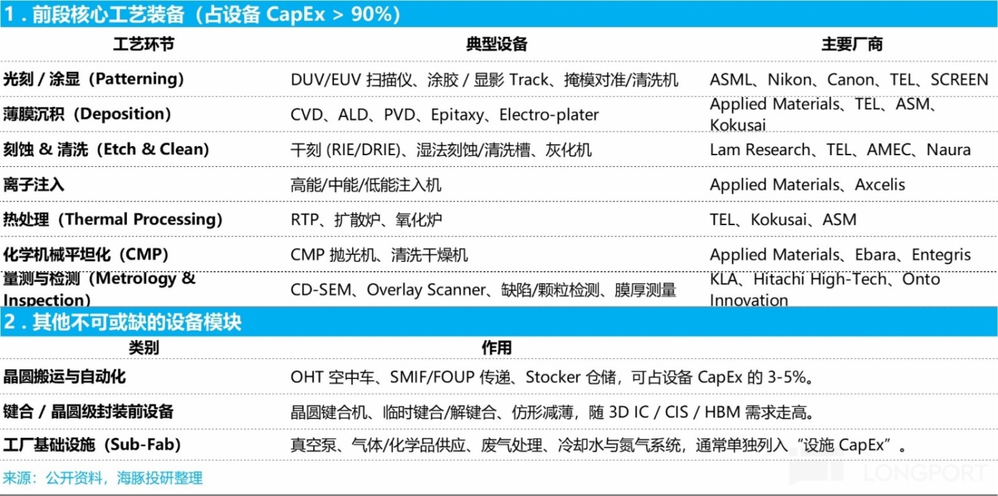 從光刻 → 沉積 → 刻蝕/清洗 → CMP → 量測/檢測 → 其他工藝,每一道工序都是要重金砸設備才做的出來。