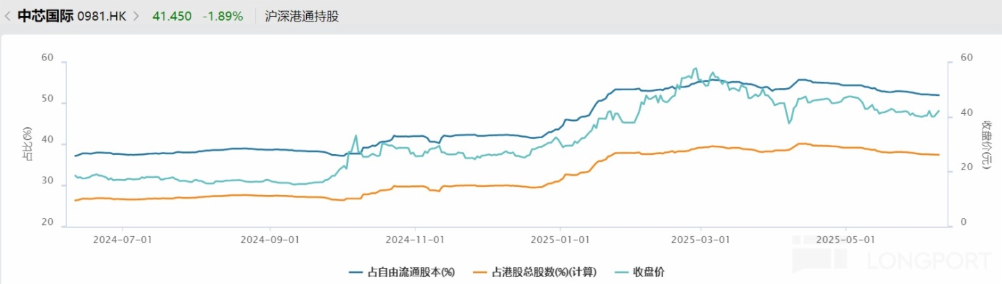 而從過去一年股價變化看,公司股價從 16 港元的低點一度上漲至接近 60 港元,實現 2 倍以上的增長。而與此同時,公司滬深港股通持股佔比從 27% 一度提升至 39%。這更是印證了南向資金的持續買入,才帶動了本輪中芯國際股價的大幅上漲。
