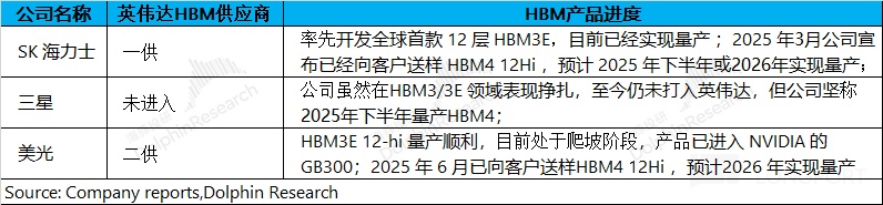 對於市場關注點的 HBM 業務,海豚君預期公司本季度實現 15 億美元左右的 HBM 收入,環增 5 億美元左右(上季度環比 3 億美元)。而隨著 GB300 的量産,下半年公司的 HBM 環比增長有望繼續擴大。