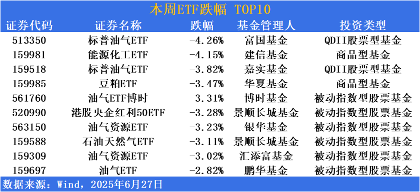 伴隨著地緣摩擦的緩和,國際油價、金價出現大幅回落,防禦類資産出現深度回調。油氣、紅利相關ETF跌幅明顯。盡管防禦類資産紅利了結情緒明顯,但機構認為,紅利仍將是今年主綫之一。