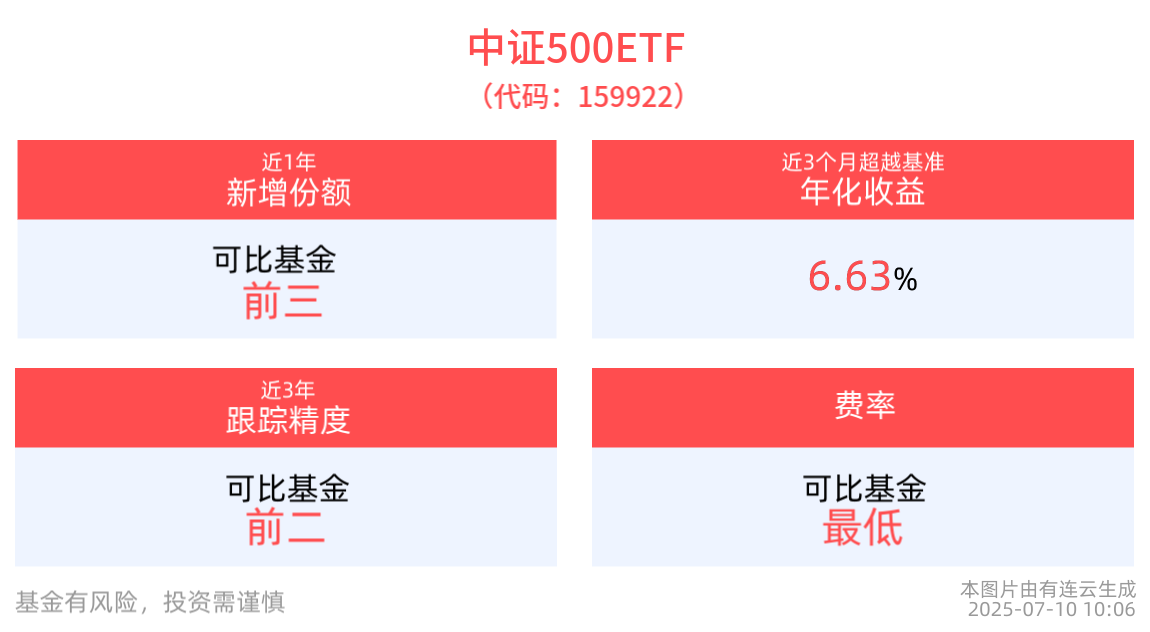 規模方面,中證500ETF最新規模達104.25億元。份額方面,中證500ETF近1年份額增長20.14億份,實現顯著增長。