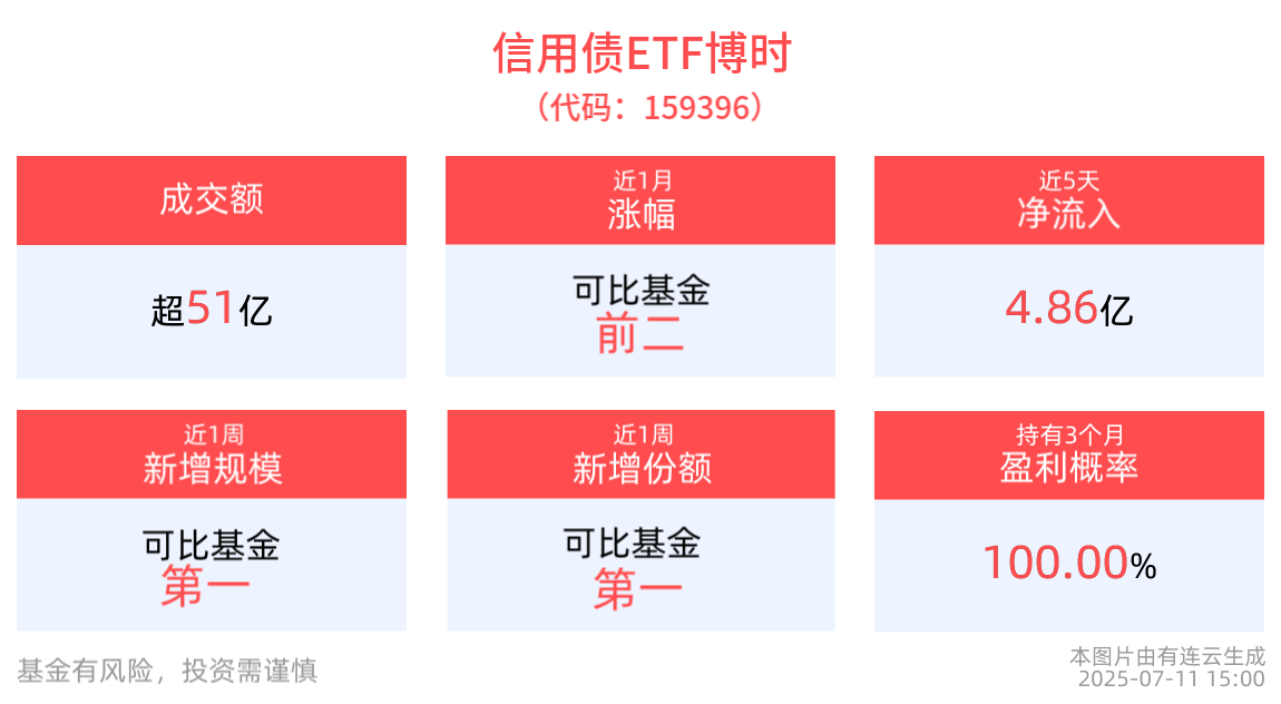 跟蹤精度方面,截至2025年7月10日,信用債ETF博時今年以來跟蹤誤差為0.009%,在可比基金中跟蹤精度較高。
