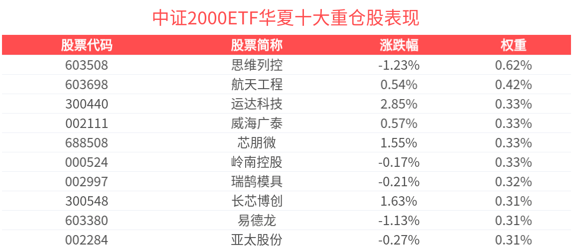值得注意的是,中證2000ETF華夏受大市影響盤中下探,但尾盤溢價擴大至0.50%,或有資金逢低佈局。