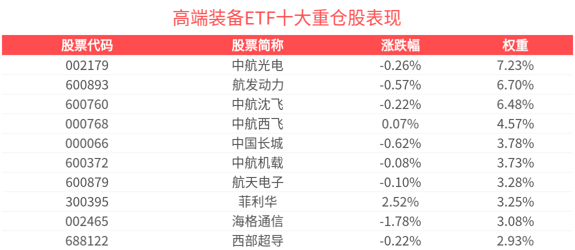 數據顯示,截至2025年6月30日,中證高端裝備細分50指數前十大權重股分別為中航沈飛、航發動力、中航光電、中航西飛、中航機載、中國長城、海格通信、航天電子、中航成飛、西部超導,前十大權重股合計佔比45.22%。