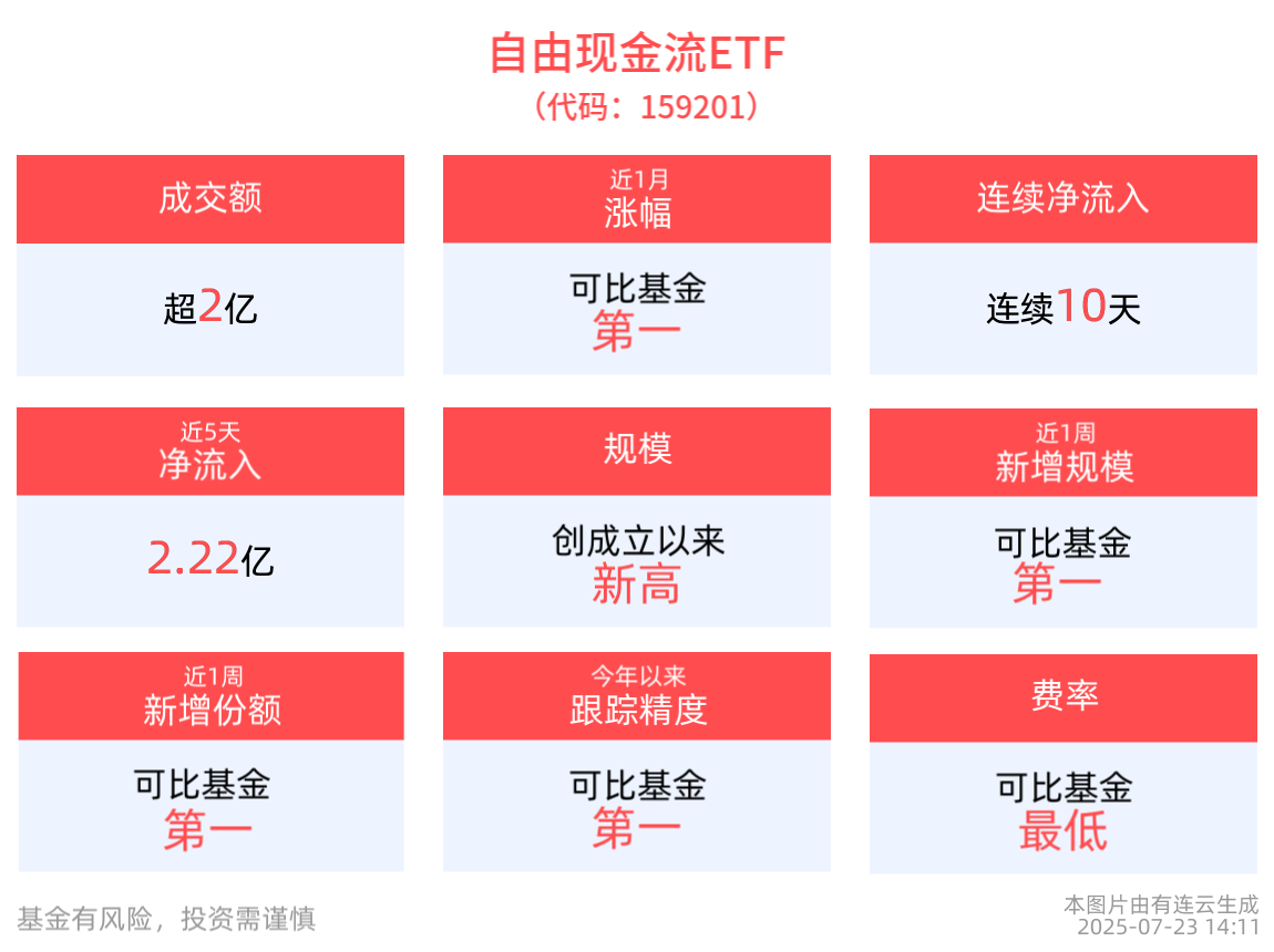 同類規模最大的自由現金流ETF(159201)連續10日「吸金」,持倉股南京新百、東方電氣漲停