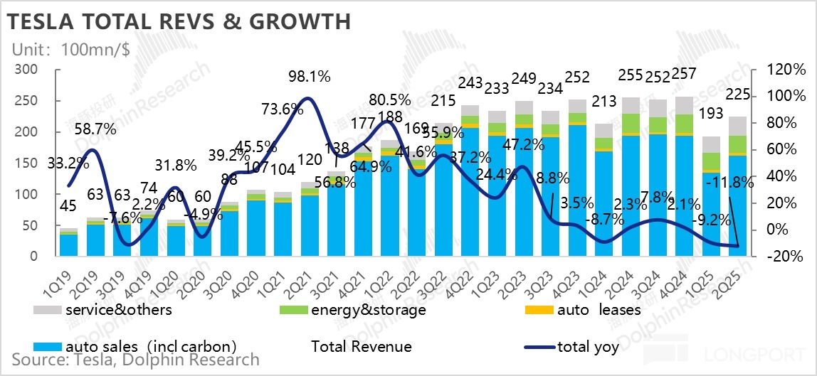 1. 總收入端表現不錯:本季度總收入端225億,超出市場預期2-3億左右,儲能業務因為關稅影響收入端表現平平其實已經被price in, 而服務業務本季度還在環比上行,表現也不錯,但真正超預期的仍然在最核心的汽車業務上,汽車業務基本盤終於開始有所回暖!