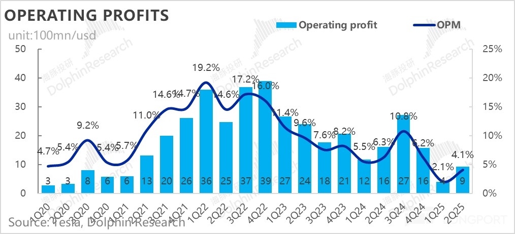 $特斯拉(TSLA.US) 特斯拉(TSLA.O)於北京時間7月23日淩晨美股盤後發佈了2025年第二季報,一句話總結,二季度業績本身表現不錯,但特斯拉本身就是一個定價在未來的股票,尤其在目前330的相對高點價位,高股價、低預期下的超預期並不值得慶賀。來看核心信息: