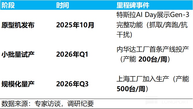 ② Optimus業務上:2025年年末及2026年年初Gen 3首次開始量産
