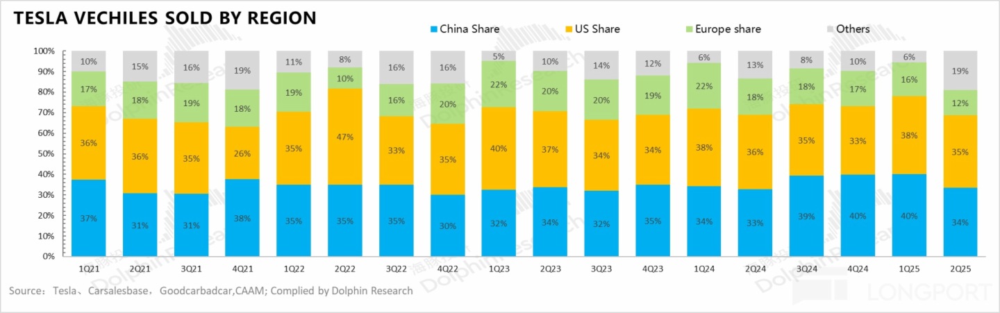 ③ 歐洲市場:歐洲市場特斯拉的表現也相對一般,之前一季度受到了馬斯克的政治活動引發的品牌價值損傷,這對歐洲影響尤為顯著,因為企業車隊買家佔歐洲銷量比例較高。