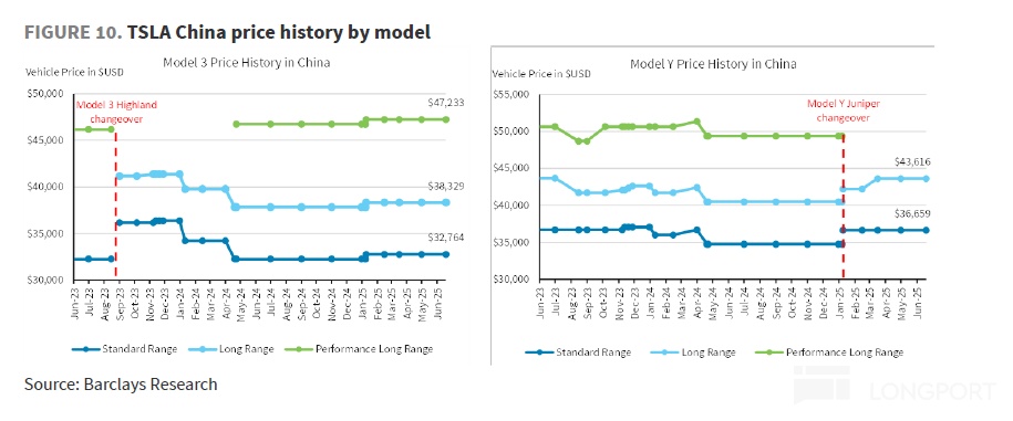 b. 中國:在中國,Model Y Juniper的起售價也相比老款Model Y上漲了3%左右。