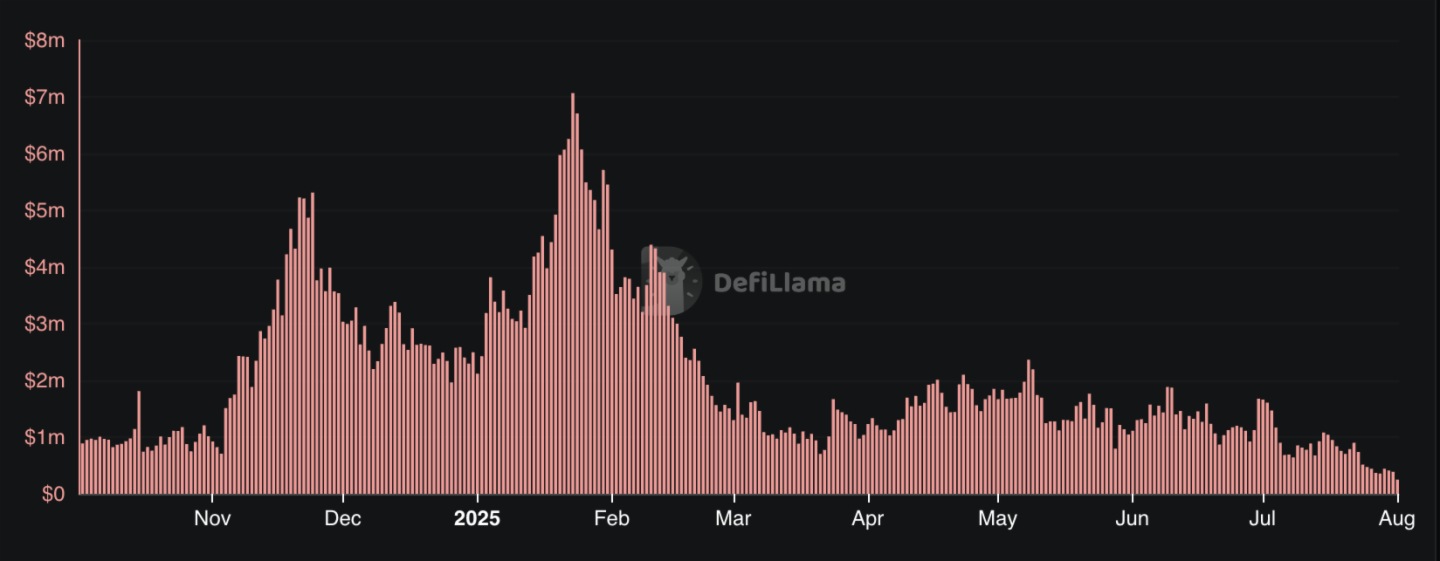 Memecoin 正在消亡。自 2025 年 2 月以来,它们一直在持续下滑。不仅 PumpFun 的日收入下降了 93.4%,Let'sBonk 的整体市场规模也在萎缩。