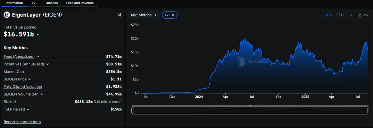 就像銀行存款不僅能賺利息,還能同時"打工"賺外快。EigenLayer 165.91億美元的總鎖倉價值印證了這一模式的吸引力,而The Ether Machine已成為該生態最大的機構參與者之一。