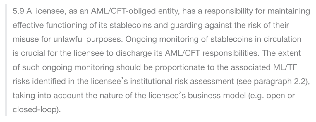 然而,這並不意味著他們就完全脫離了監管視野。指引第5章明確指出:發行商對所有流通中的穩定幣都負有持續監控的義務,包括客戶和非客戶所持有的部分。