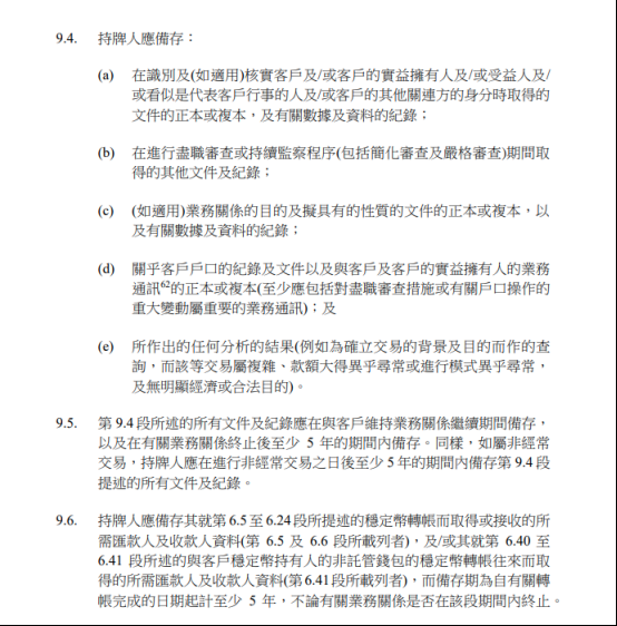在《打擊洗錢及恐怖分子資金籌集指引(持牌穩定幣發行人適用)》中,金管局要求持牌穩定幣發行人採取有效措施識別和核實穩定幣持有人的身份,客戶需接受完整的客戶盡職審查(CDD)程序並定期審查(如姓名、出生日期、身份證件號碼等,至少保留 5 年),非客戶持有人通常不需直接核實身份,但當監控發現與非法活動、制裁名單或可疑來源相關的錢包地址,且持牌人無法證明其風險緩解措施(如區塊鏈分析工具)足以防範 ML/TF 風險時,持牌人需進一步調查並核實相關持幣者的身份。