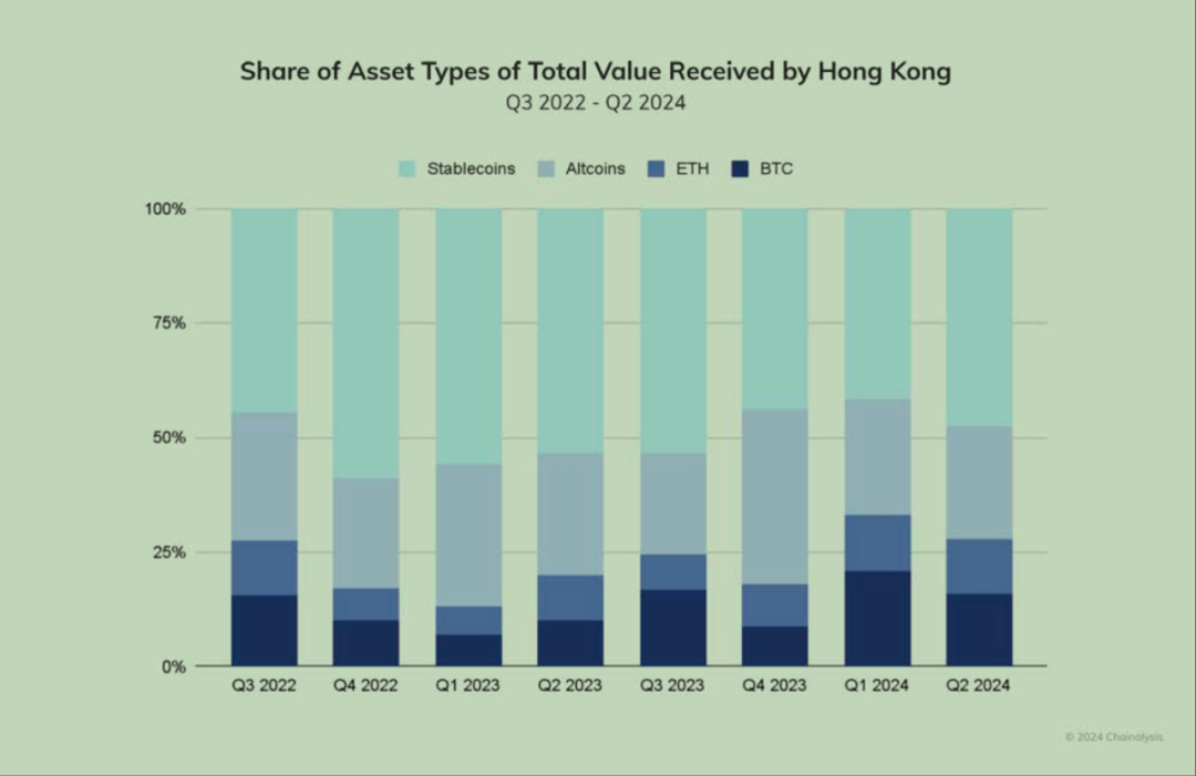 1. 長期以來,穩定幣在香港用戶收取的加密資産價值佔比一直在40%以上,而隨著香港關於穩定幣立法將於今年8月份正式生效,預計這一比例還會進一步上升。