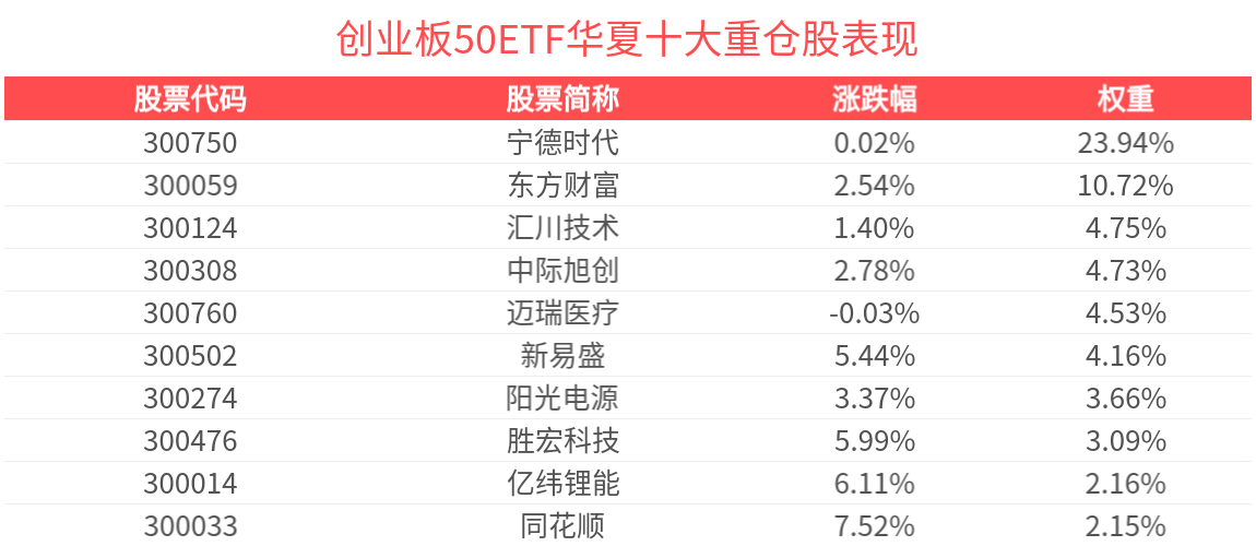 創業板50ETF華夏緊密跟蹤創業板50指數,創業板50指數由創業板市場中日均成交額較大的50只股票組成,反映了創業板市場内知名度高、市值規模大、流動性好的企業的整體表現。