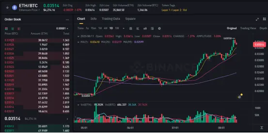 有趣的是,以太坊卻有著截然相反的趨勢。在養老金信息公佈後的24小時内,ETH現貨成交量顯著提升,同時價格迅速上漲,從3600美元一路飙升,並在8月8日突破4000美元,而來到如今,ETH已然來到了4299美元,這一輪的漲幅,再度超過了BTC。ETF也有增持現象,ETH ETF在兩日中資金淨流入增加6.8億美元。