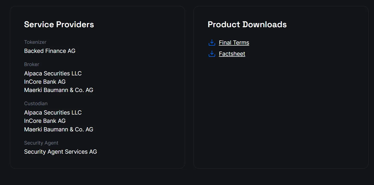 其中團隊基於瑞士法律框架開展業務,嚴格遵循當地金融監管要求,在鏈上發行完全錨定的代幣化證券,並與 Alpaca Securities LLC 等合作夥伴建立了股票購入與託管體係,確保鏈上代幣與鏈下資産之間的 1:1 映射關係。
