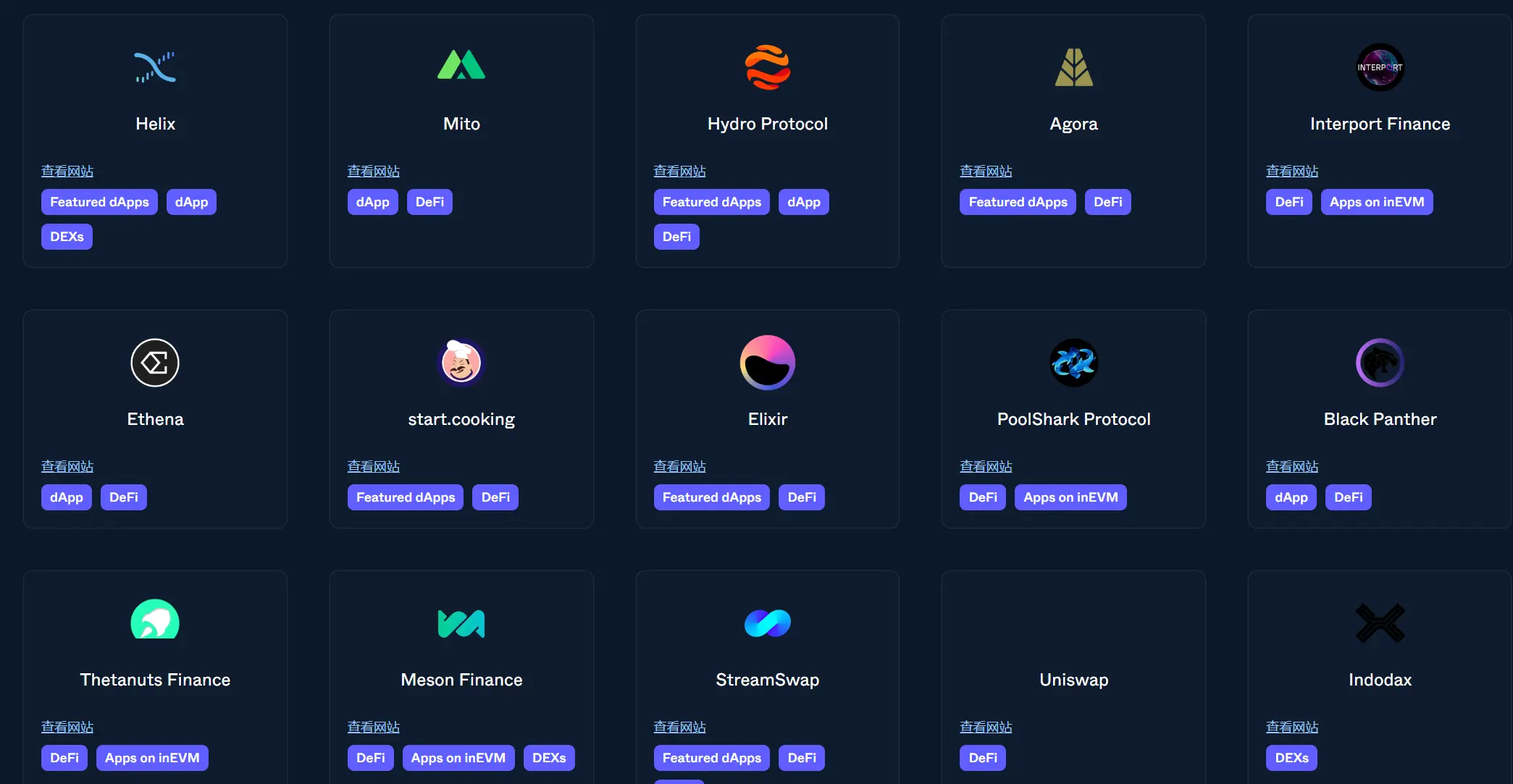 截至目前,Injective 生態已聚合超過 200 個項目,涵蓋去中心化交易所(Helix、DojoSwap)、鏈上借貸(Neptune)、RWA 平台(Ondo、Mountain Protocol)、NFT 市場(Talis、Dagora)等多個領域。
