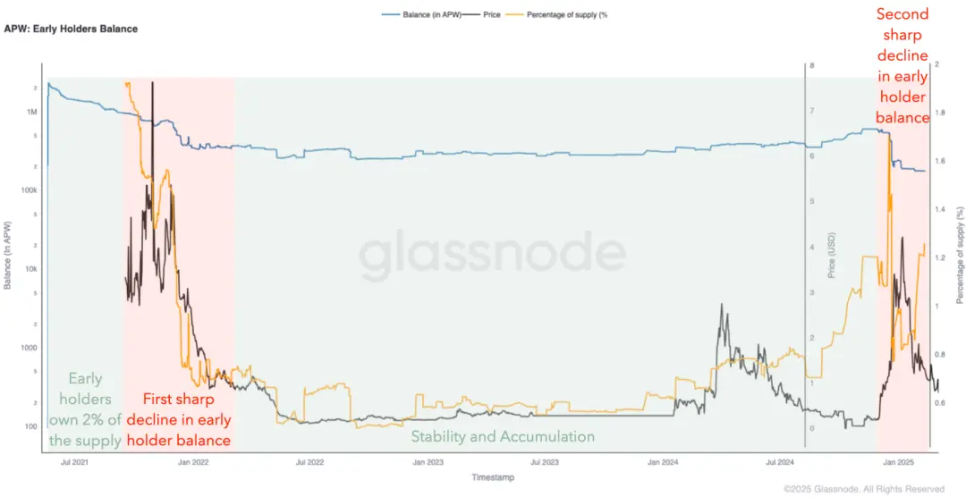 圖2↓呈現APW早期持幣者在關鍵價格峰值處的策略性抛售: