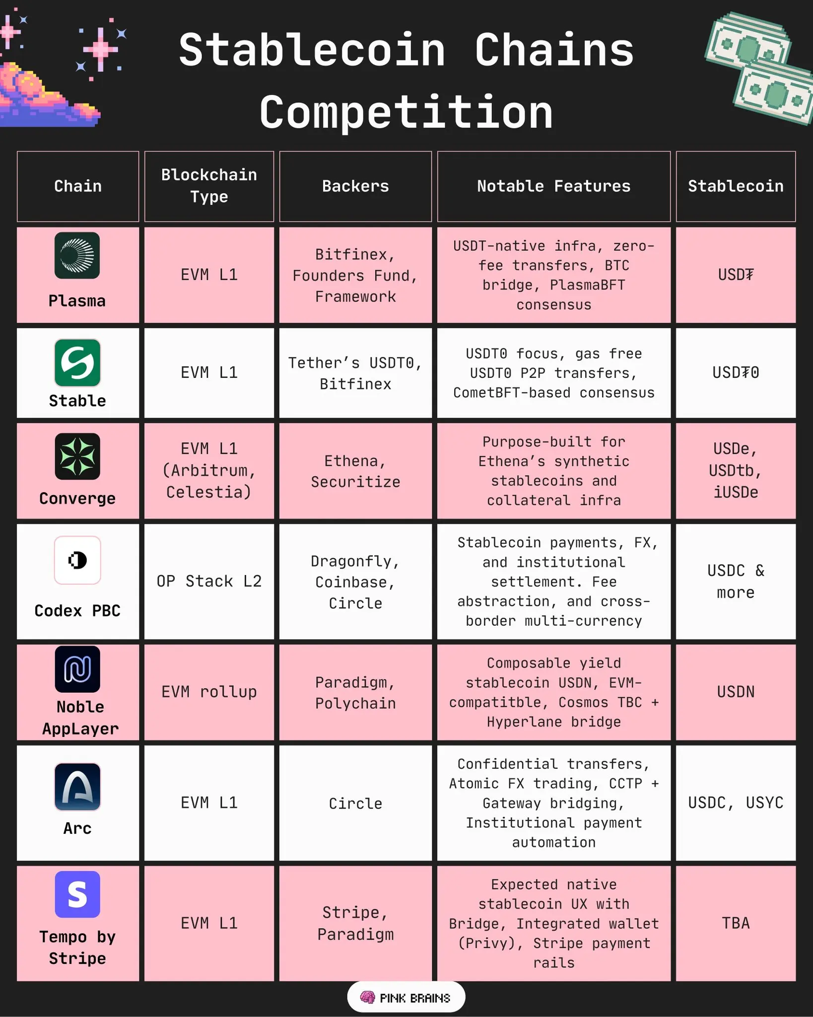 上述所有穩定幣原生鏈都展現出一些共同的特徵: