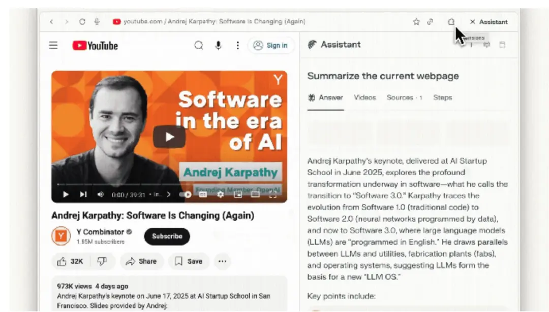AI 初創公司 Perplexity(以問答引擎聞名)在 2025 年中期推出了 Comet 浏覽器,作為 Chrome 的 AI 驅動替代品。Comet 的核心是内置在地址欄(omnibox)中的對話式 AI 搜索引擎,能夠提供即時問答和摘要,而不是傳統的搜索鏈接。
