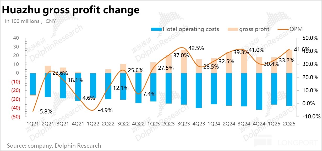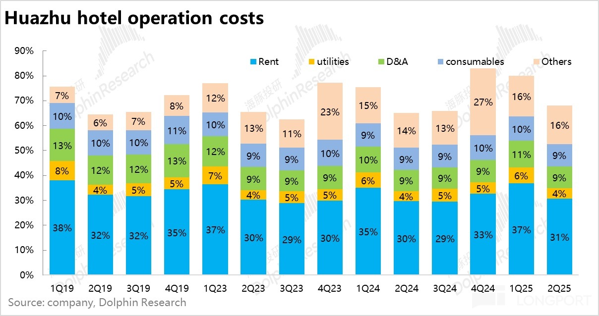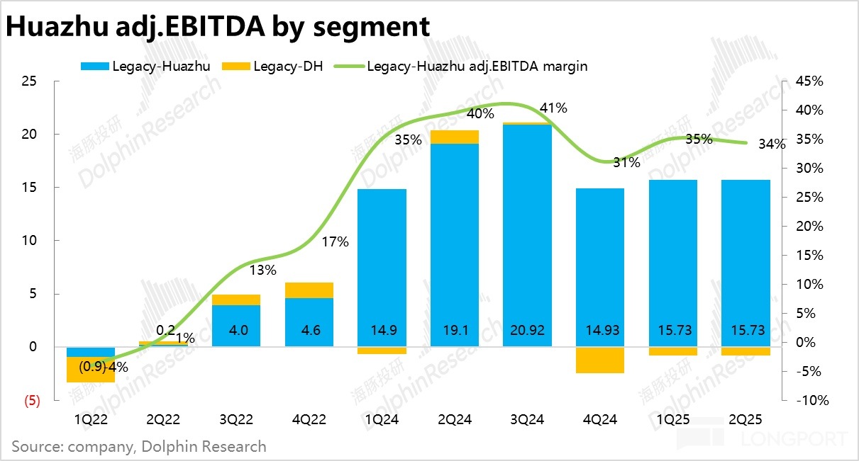 費用率上在 RevPAR 下降的情況下整體保持穩定,最終,華住調整後 EBITDA 達到 22.8 億元,同比增長 11%,超出市場一致預期(20.7 億元)。