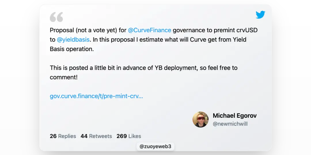 Llama Lend 本質上是 Curve 的一部分,但是 Curve 創始人竟然提案要增發 6000 萬美元的 crvUSD 用以供給 YB 初始流動性,這就有點大膽了。