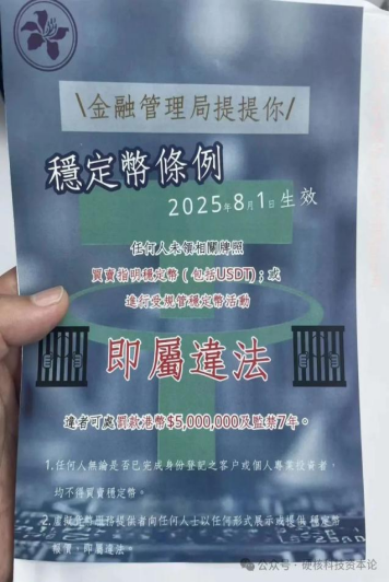今年我國香港地區最具影響力的《穩定幣條例》已發佈,並於 2025 年 8 月 1 日生效,這本來是進一步規範加密資産行業、金融市場的大好事,但飒姐團隊才注意到,隨著生效日的來臨,香港加密資産市場出現了一個非常莫名其妙的傳單事件,一時之間搞得人心惶惶。