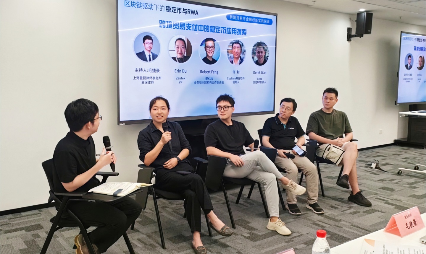 “跨境貿易支付中的穩定幣應用探索”是圓桌對話環節的第一個議題,本輪由曼昆律師事務所資深律師毛建豪主持,邀請Zentek VP Erin Du、鲲KUN業務全球機構合作副總監Robert Feng、Coshine開先軟件創始人許封、Cobo支付BD負責人Derek Wan等嘉賓展開討論。