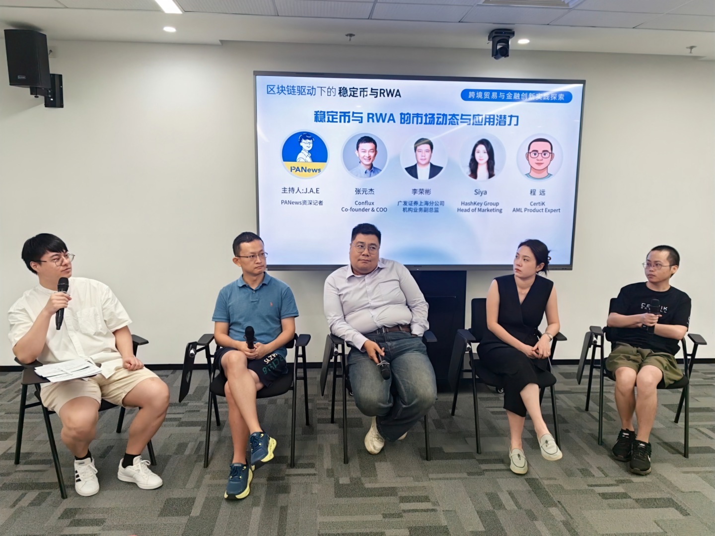 第二場圓桌對話聚焦在“穩定幣與RWA的市場動態與應用潛力”的議題上,由PANews資深記者Jae主持,Conflux聯合創始人兼COO張元傑、廣發證券上海分公司機構業務副總監李榮彬、HashKey Group市場負責人Siya、CertiK 反洗錢産品專家程遠等嘉賓參與討論。
