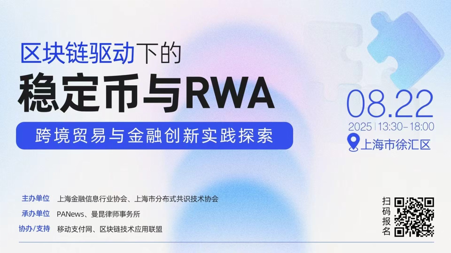 為進一步促進行業交流,深入探討穩定幣與RWA飛速發展帶來的機遇和挑戰。8月22日下午,由上海金融信息行業協會、上海市分佈式共識技術協會主辦,PANews聯合曼昆律師事務所承辦,移動支付網、區塊鏈技術應用聯盟協辦支持的“區塊鏈驅動下的穩定幣與RWA:跨境貿易與金融創新實踐探索”活動在上海成功舉辦。
