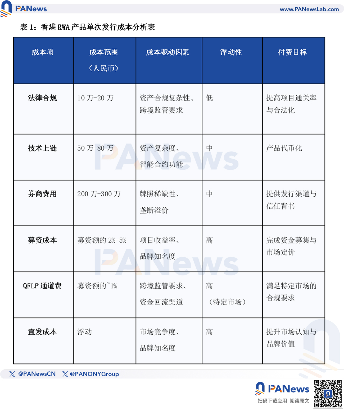 對於規劃在香港深耕RWA領域的項目方而言,産品單次發行成本僅為冰山一角。規模化的業務佈局和合規維護將産生更大的資金挑戰,其固定成本雖然高昂,卻也將形成項目方的競爭壁壘與“護城河”。